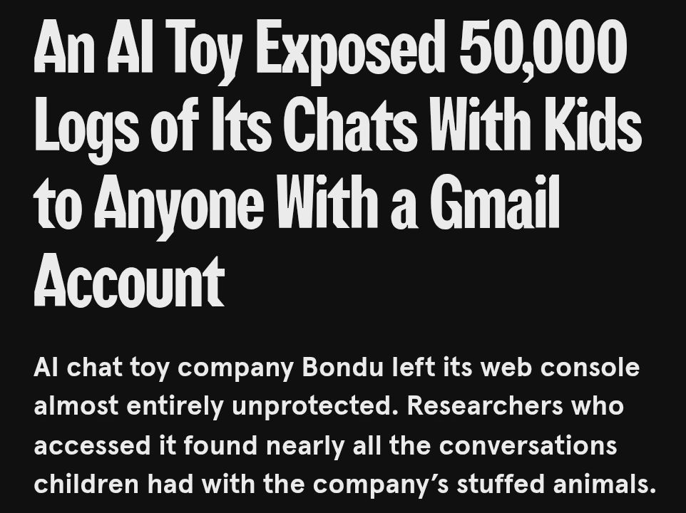 And no way in hell am I giving my kids an Internet connected chat bot stuffed toy.