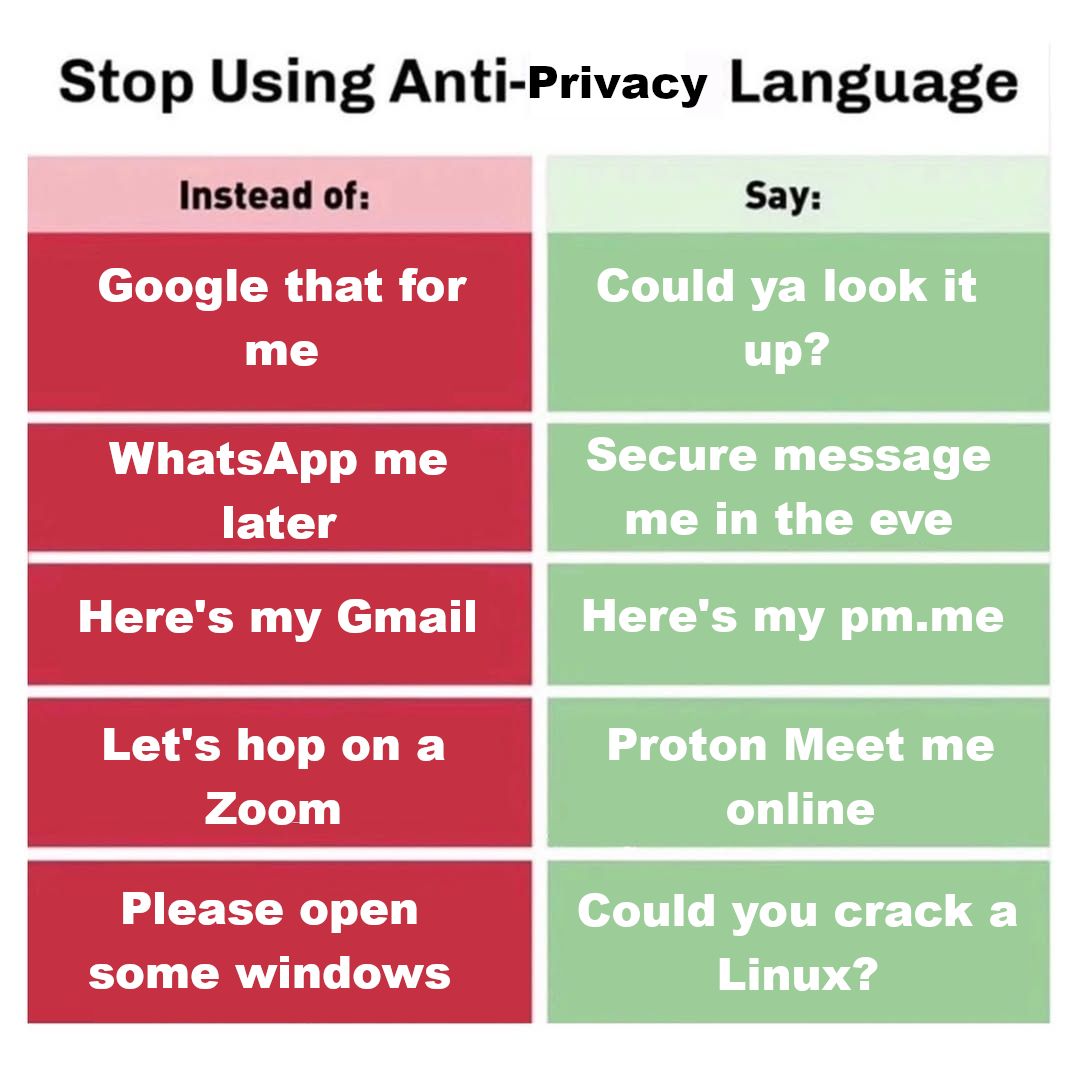 Picking another corporation to base your language around isnât better. Why not refer to the general privacy concepts that corporation claims to have?