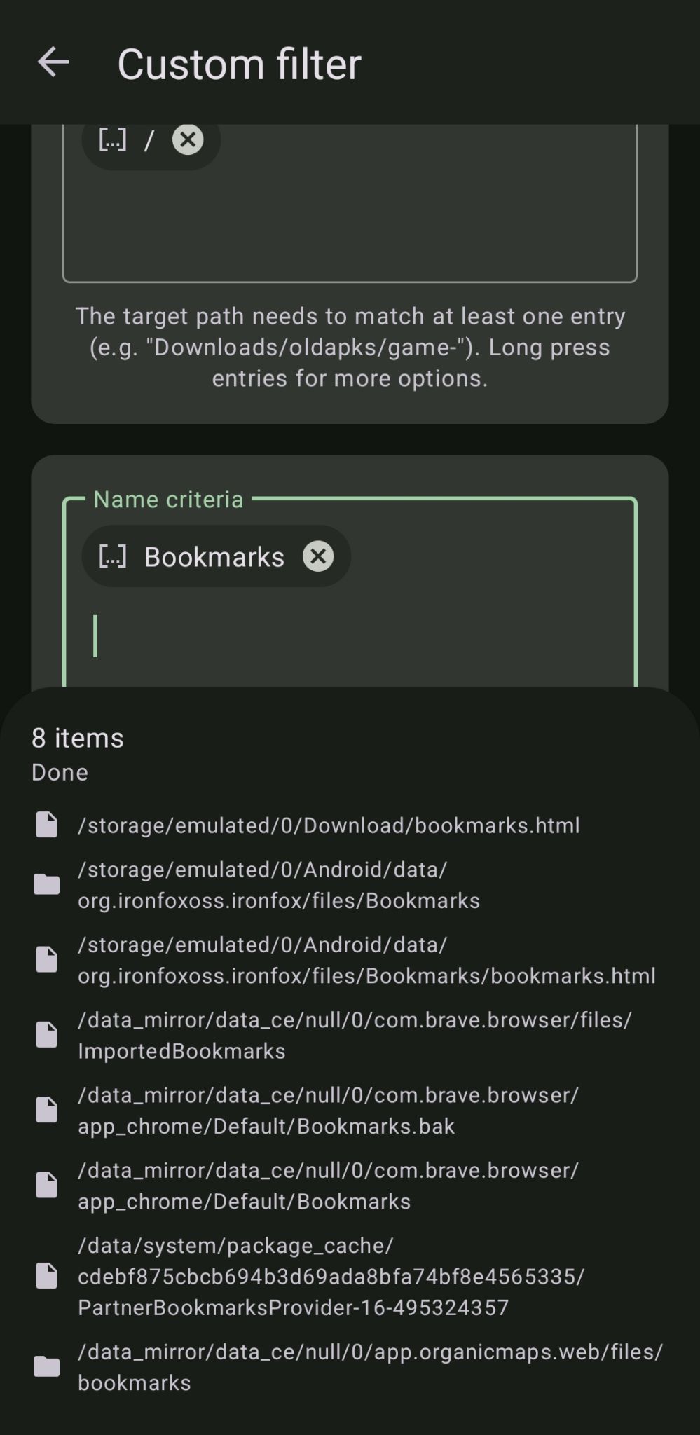 I tried to create one under /storage/emulated/0/Android/data/org.ironfoxoss.ironfox/files/ and copied my Brave bookmarks.html file into it, but to no avail. I ended up manually copying the bookmarks into IronFox, since I couldn’t find any import function.