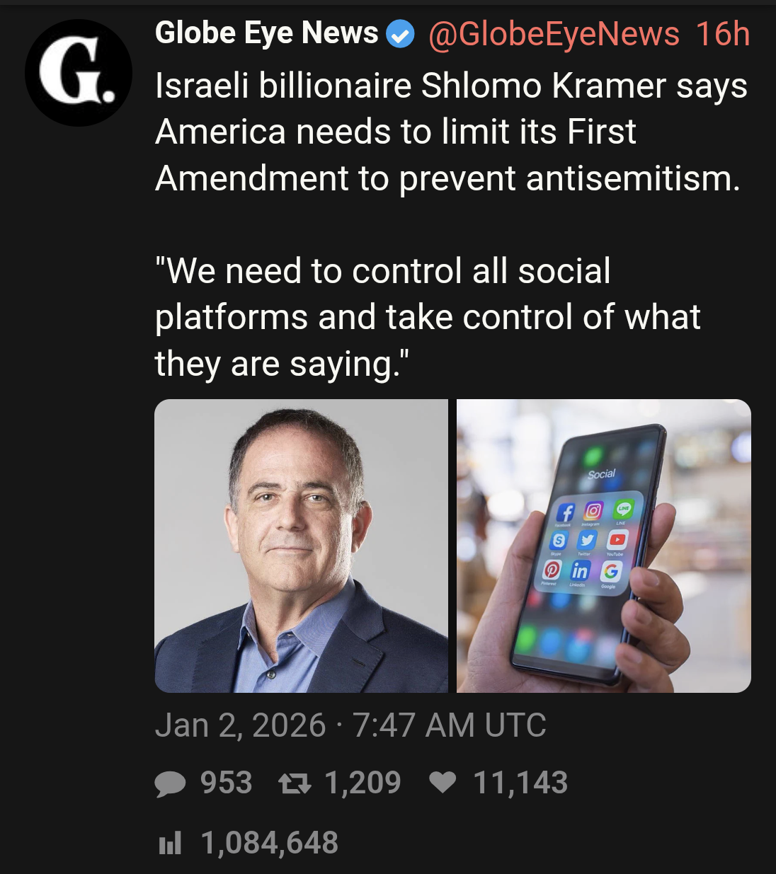 It doesn’t have to come at us directly. Keep the 1st as is but control the conveniently consolidated media conglomerates.