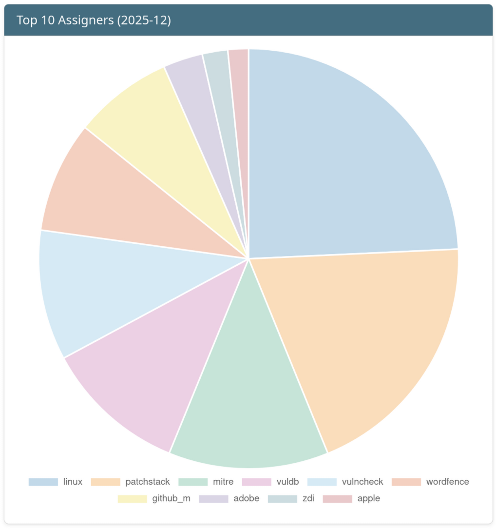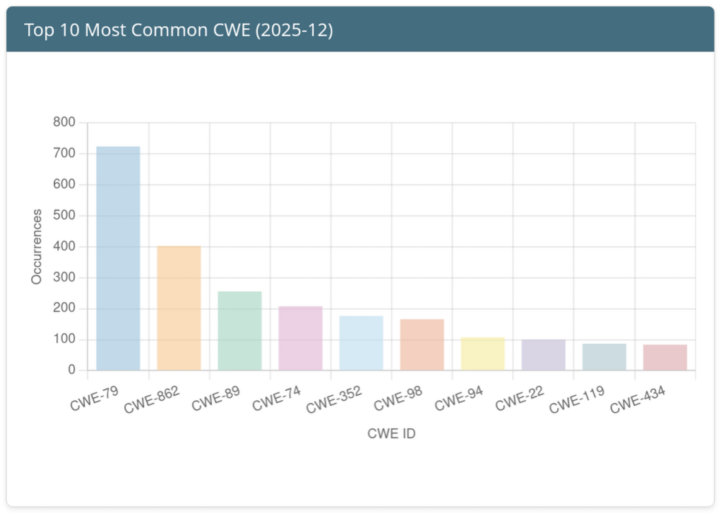 December 2025 was dominated by a massive surge in activity surrounding CVE-2025-55182 affecting Meta’s react-server-dom-webpack. With 852 sightings, this critical vulnerability (referenced by contributors as “React2Shell”) significantly outpaced all other vulnerabilities, highlighting a major focus on web application infrastructure exploitation.