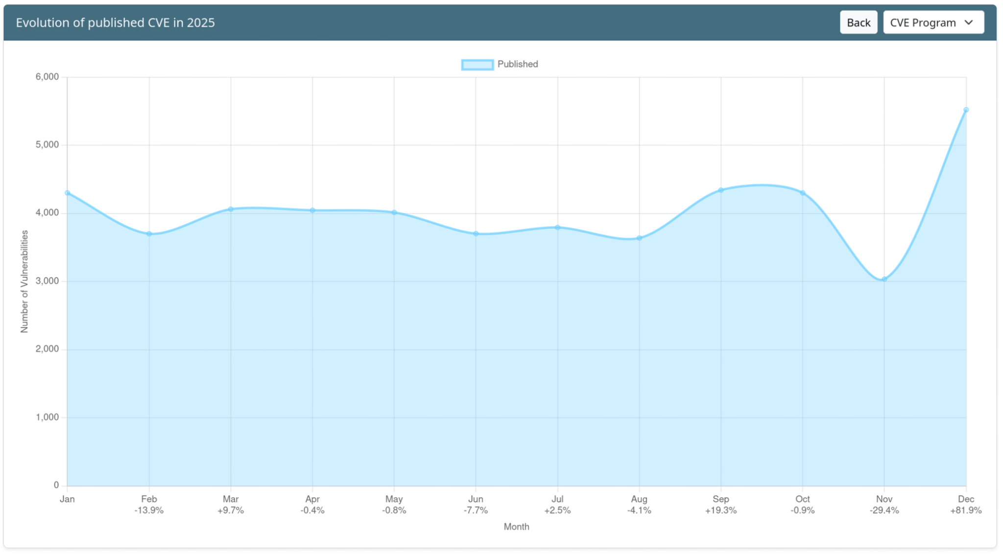 Evolution of published CVE in 2025